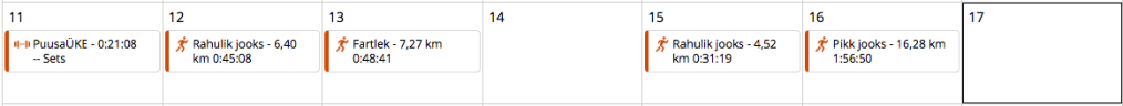 Esmaspäev: trennivaba. Olin tubli ja tegin mõned puusaharjutused.