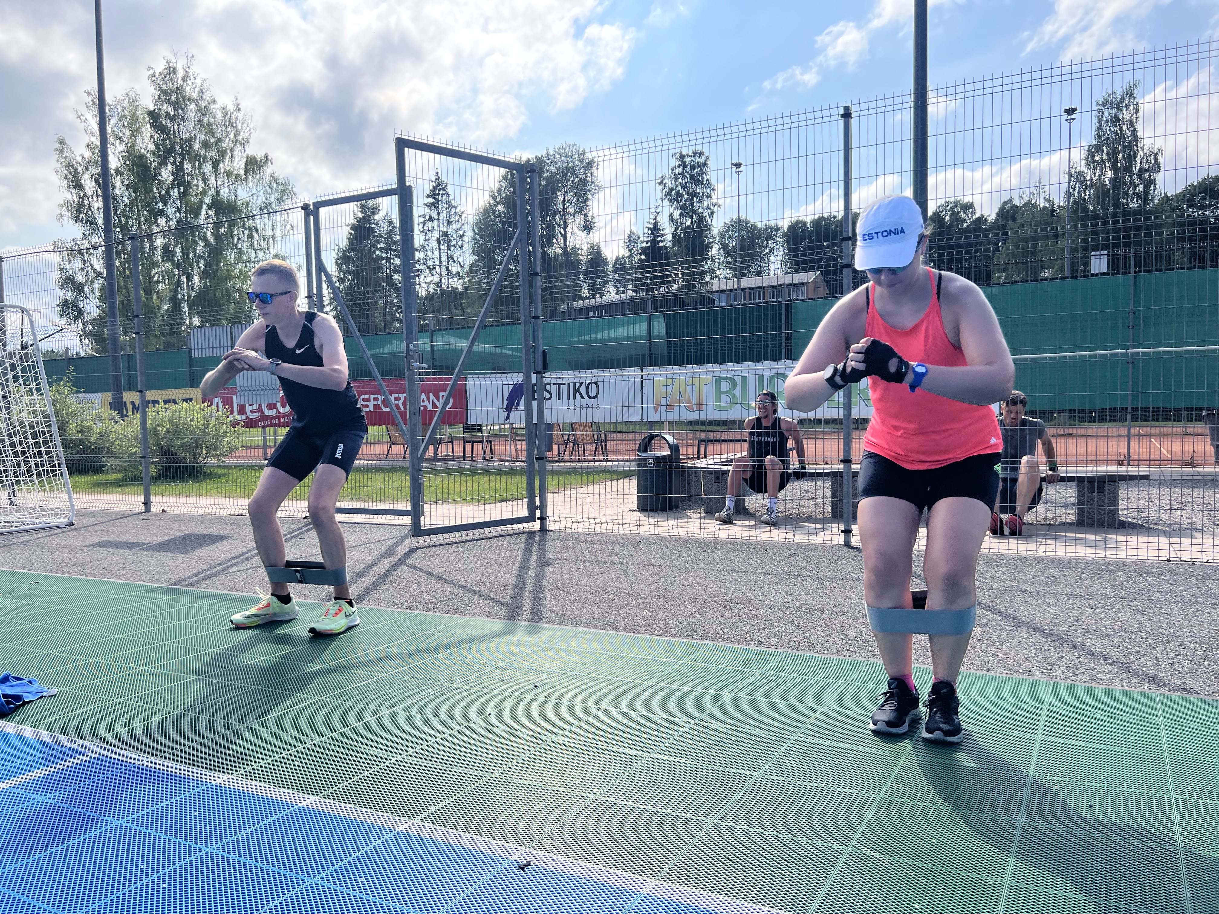 Veidi vähem kui tunnike puhkust ning suundusime laagri esimesse ametlikku trenni: BodyAttacki. Tegime seda õues kossuplatsil päikese käes, seega niigi intensiivne trenn sai veel sammukese intensiivsemaks. Mul oli toss suhteliselt väljas, aga andsin endast maksimumi. 54 min, 140 l/min Reede õhtu lõpetasime mõnusa olemisega Kekkose saunas ja Kääriku järves. Mõnus!