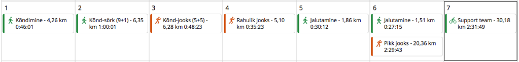 Pühapäev: trennivaba. Veeresin härra Jooksja pikal jooksul rattaga kaasa ja pakkusin juua. Keskmine pulss oli 88, seega vist trenniks ei kvalifitseeru.