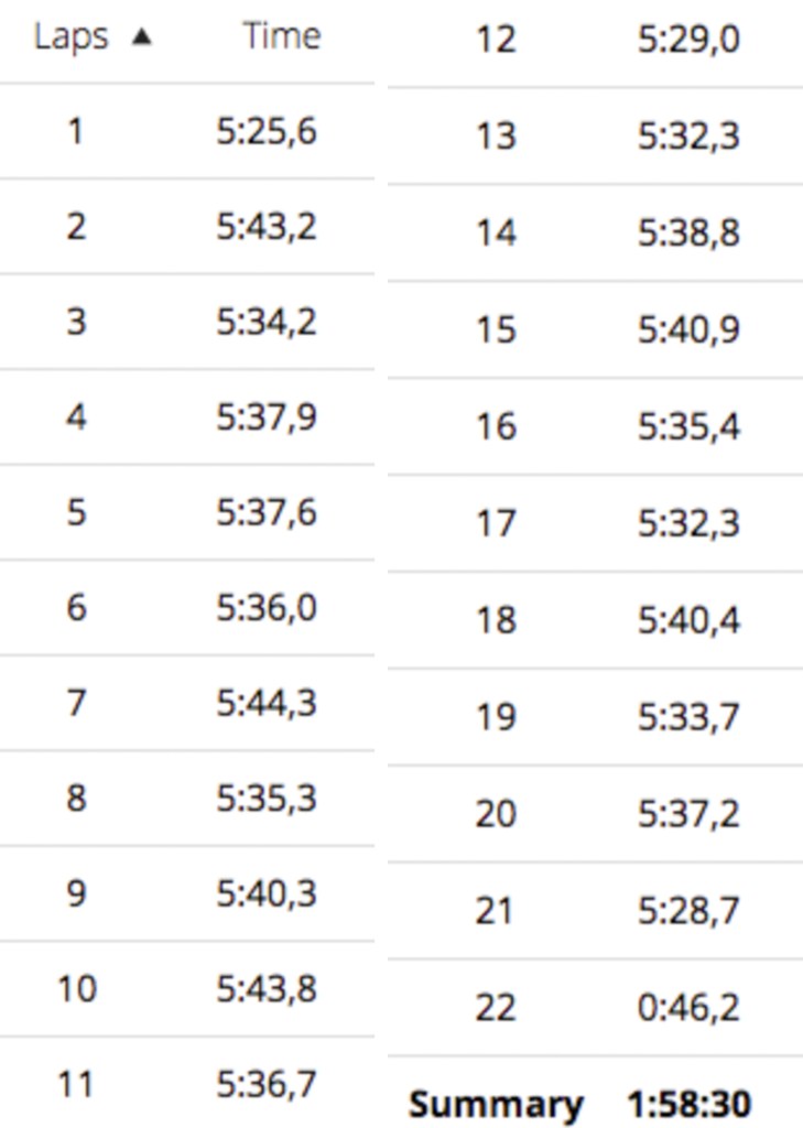 21,1 km: 1:58:27, 5:37 min/km