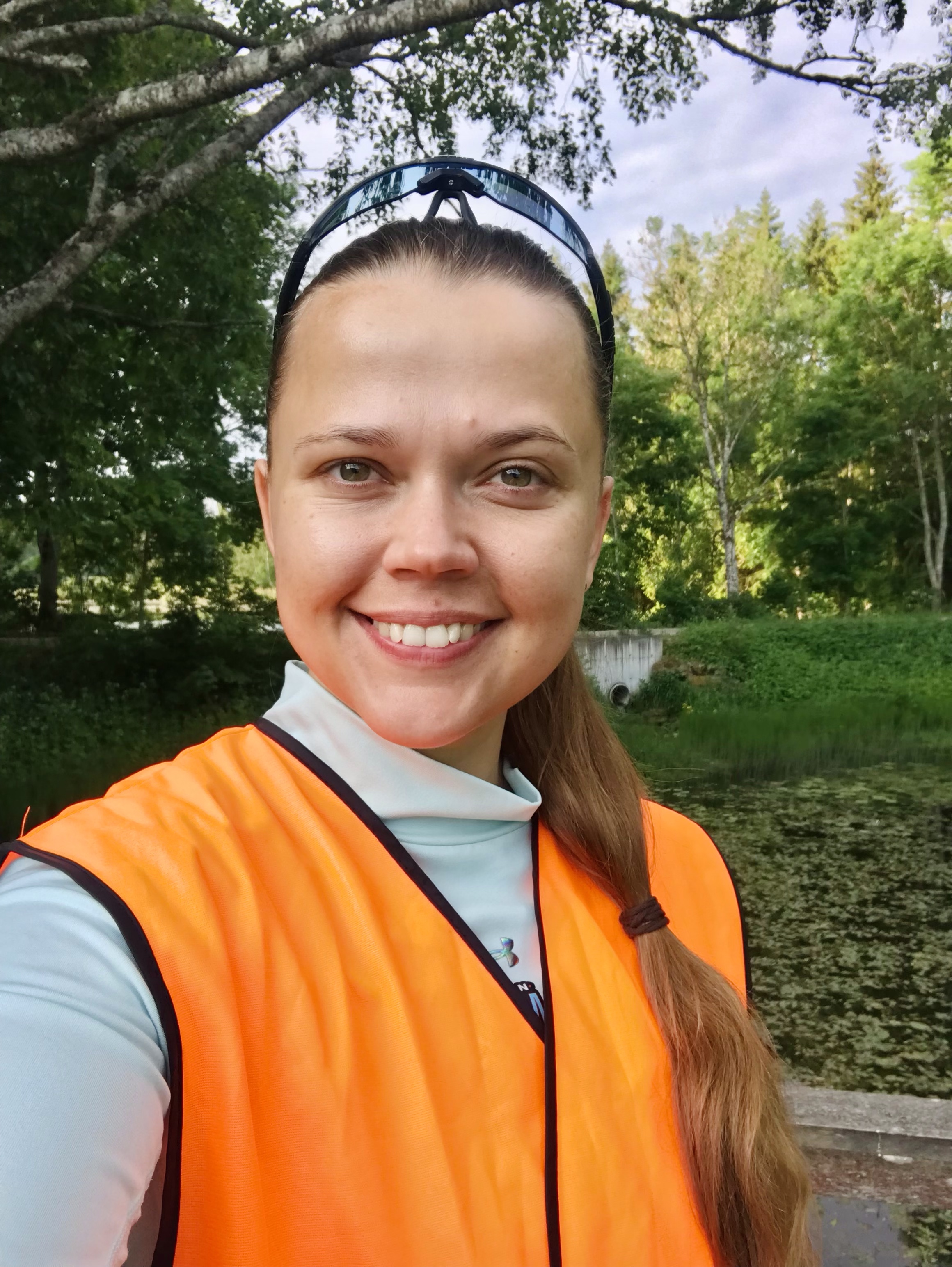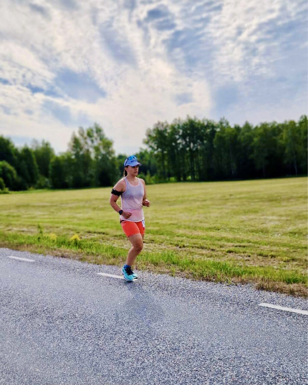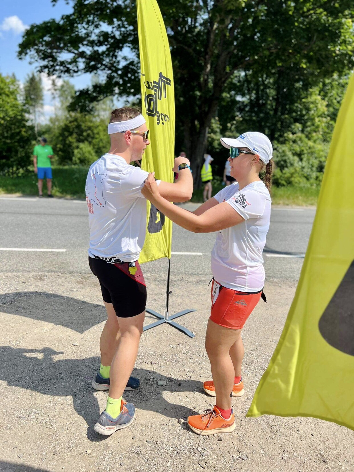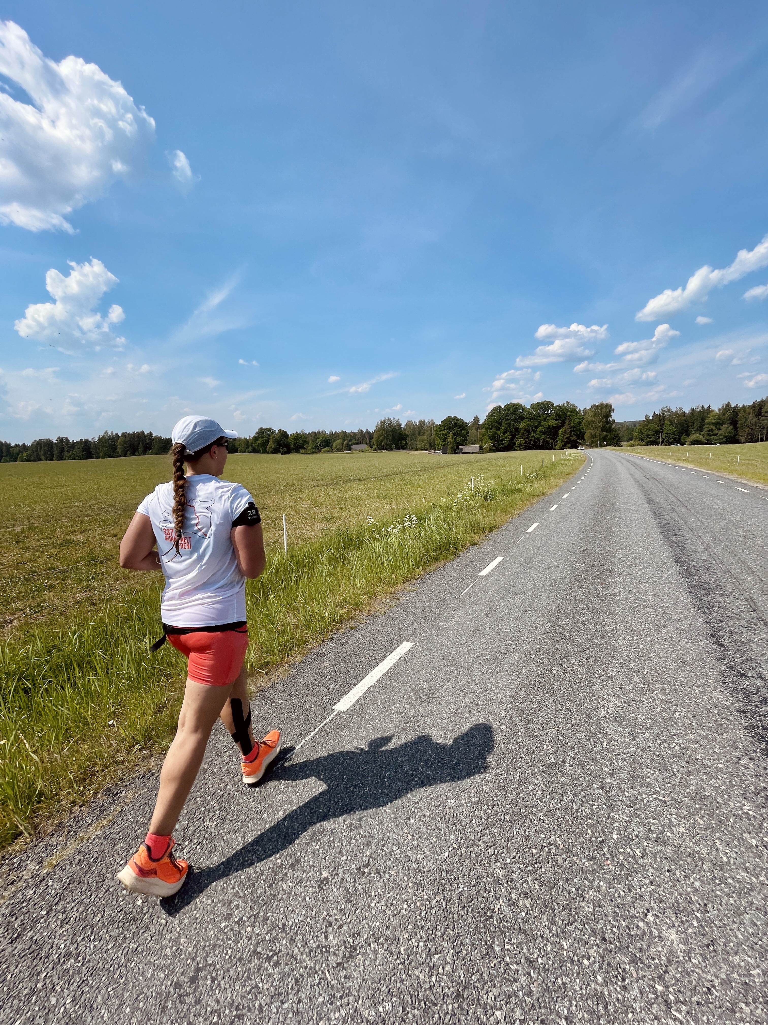 Teise vahetuse alguses, kui kell oli 7.30, oli juba lühikeste riietega liiga palav tee ääres seista ja jooksjat joota. Lootsime, et uus päev ja Põhja-Eesti toovad jahedama temperatuuri, aga ei midagi. Päike lõõskas taevas. Kui aga Tapale lähenema hakkasime, ilmusid taevasse vaikselt pilved. Läksin oma viimasele vahetusele vastu kell 8.26. Enne kastsin end korralikult veega märjaks. Päikesekreem, -prillid ja nokats on iseenesest mõistetavad.