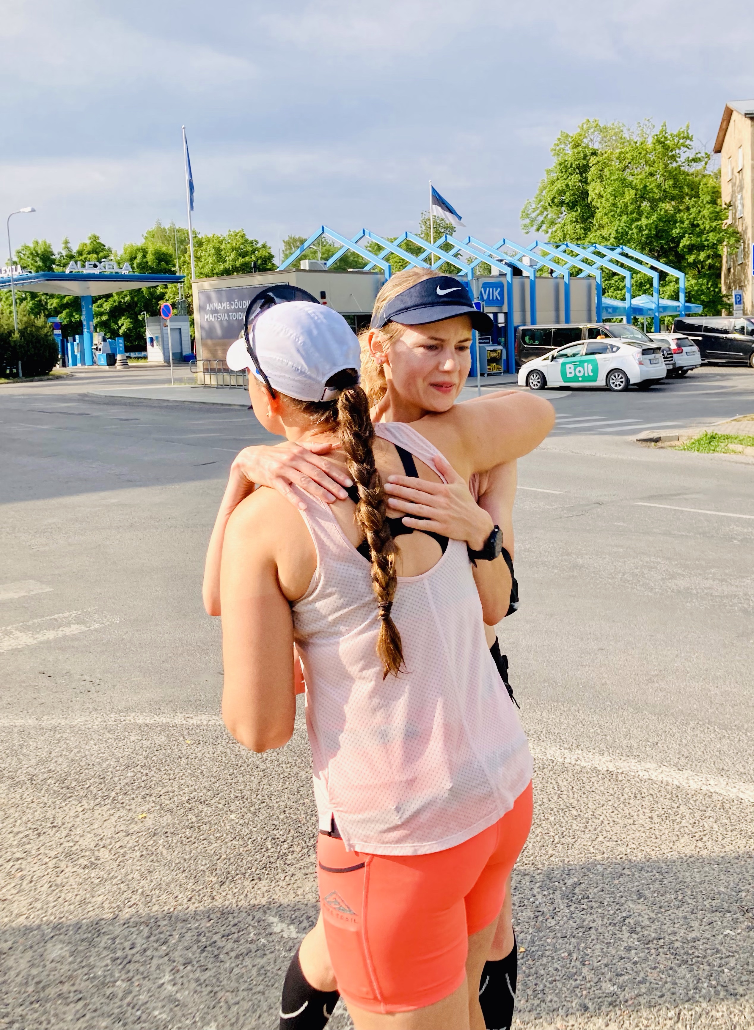 Teistele enam pilvi ei jagunud. Meie auto kaks viimast jooksjat said jälle jubeda sauna, jootsime-kastsime neid maksimaalselt iga 2 km järel. Elasime ka teistele meeskondadele kaasa, täpselt samuti nagu elasid kõik meile kaasa. Lasime autost muusikat, pakkusime juua, ütlesime julgustavaid sõnu. Abiks ikka. Kuulsuse sära saatis meid edasi, sest täpselt mõni minut meie jooksja ees tegi oma viimast etappi Brigitte Susanne Hunt. Viimaks olid meie auto kilomeetrid kokku pakitud: jõudsime Kõrvemaale, kust läks teele teine auto.