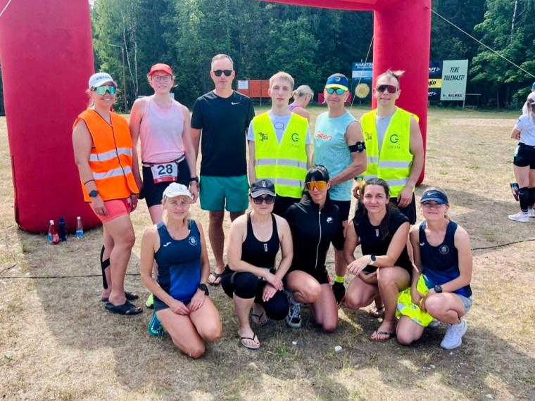 Laupäeval ärkasin kell 6, panin end valmis ja sõin putru. Kell 7, kui me sõitma hakkasime, oli õues juba nii soe, et lühikeste pükste ja T-särgi peale midagi lisaks vaja polnudki. Laadisime hunniku varustust ja viis jooksjat bussi peale ning Treener tuli samuti kaasa elama. Munamäel olime umbes 8.30, pool tundi enne starti. Tegime pilte, arutasime viimased detailid üle ning kell 9 läks tiim TÜASK Marise Inglid teele.