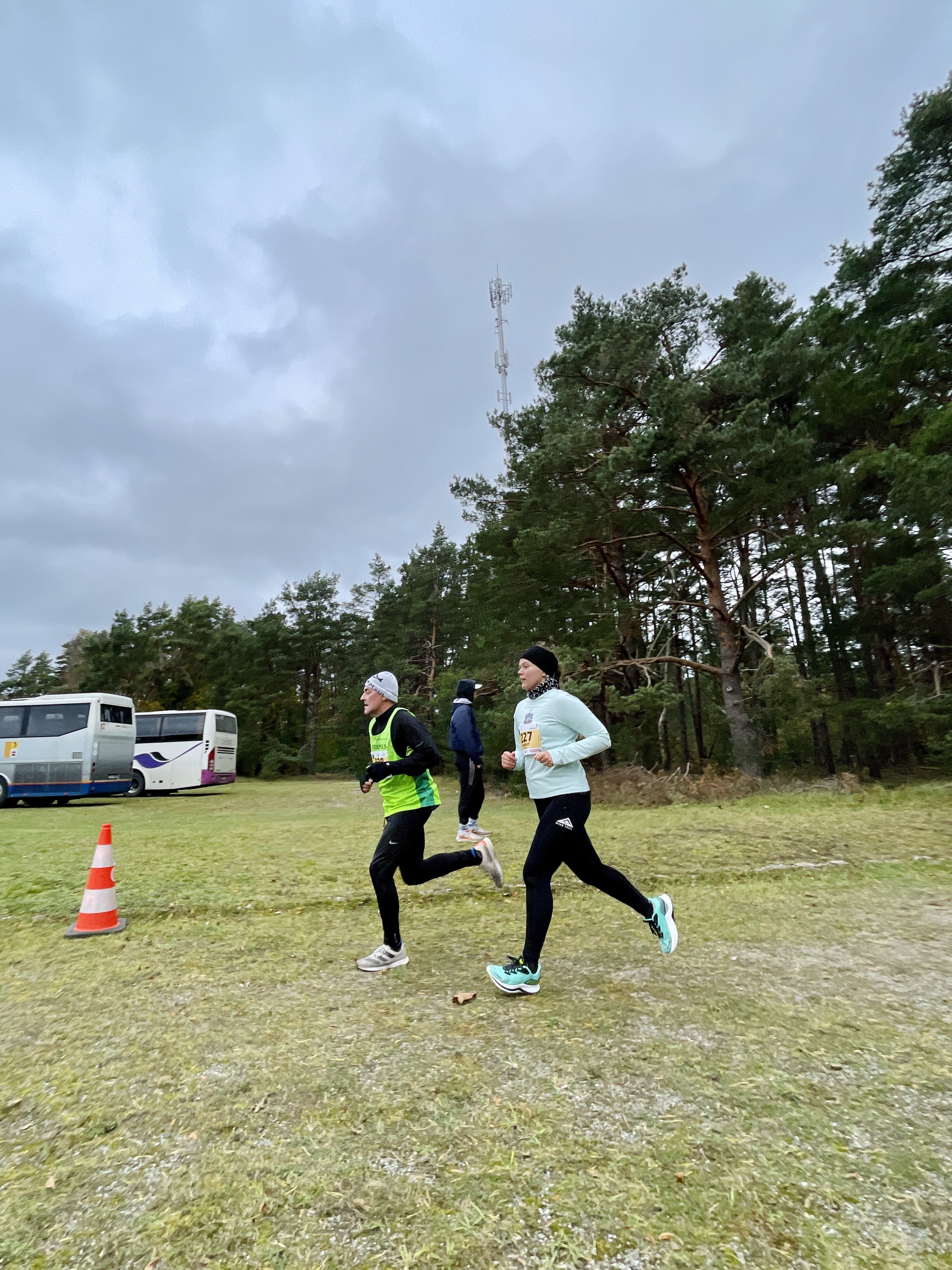 Metsa pöörates leidsin ühe paari, kelle tempos ja tuulevarjus joosta. Metsas oli langetatud metsaga lõikudel ikka tuuline, seega tuulevari kulus nii marjaks ära, eriti arvestades, kui palju minust eelnevale lõigule maha jäi. Annika sai mu jälle kätte ja hoidis veel minu varju, nagu mina alguses tema taga jooksin.