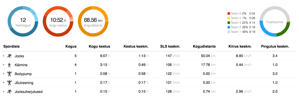 Üldplaanis jäin rahule, sest kuigi pulss kippus lõikude ajal ikka Z5 alumisesse osasse ära ronima (treener soovitas Z4), siis enesetunde poolest jaksas hästi pingutada ja pulsi taastumine oli väga kiire.