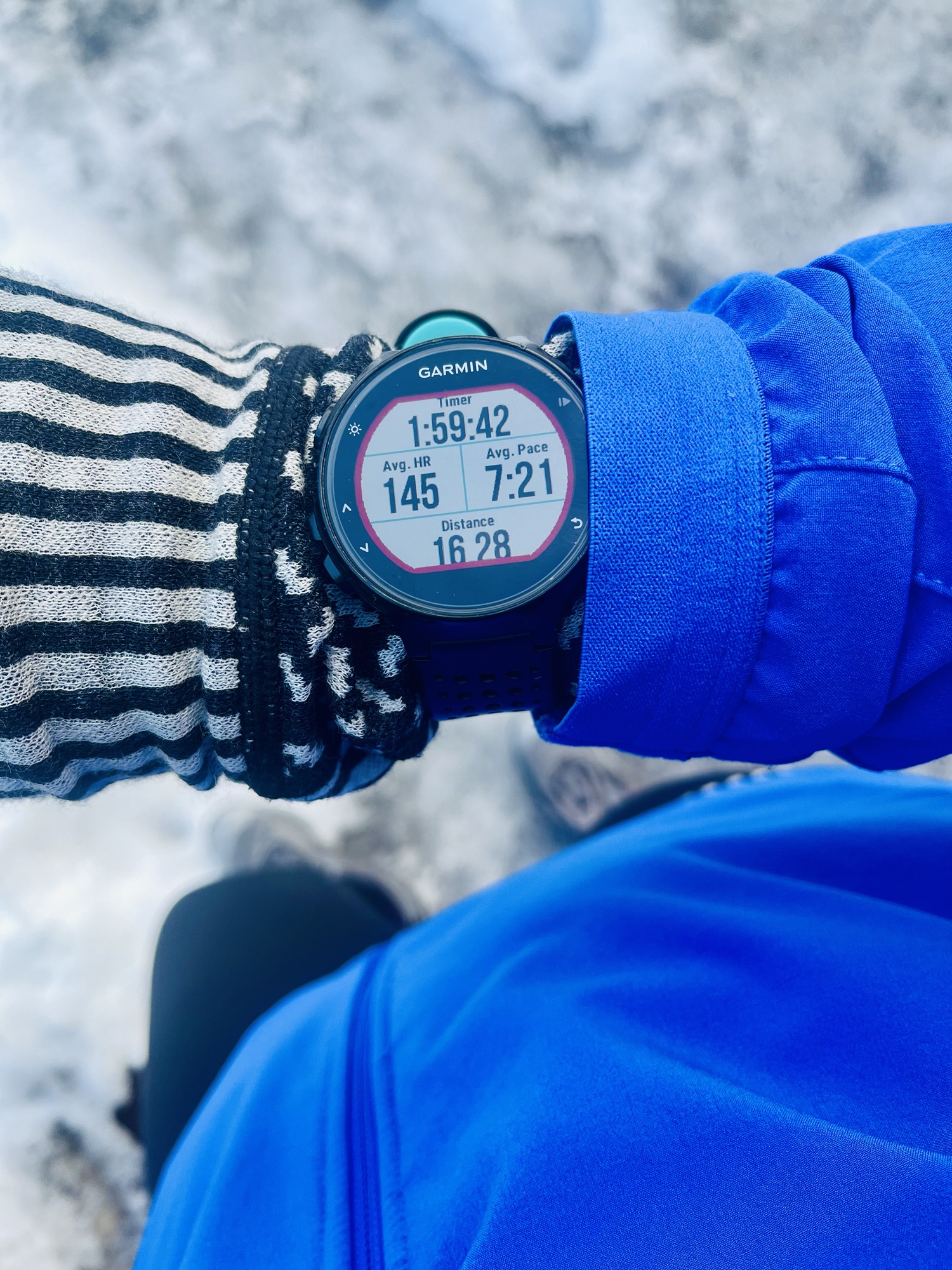 Laupäev: pikk jooks. Kuna järgmisel nädalal ootab ees väga pikk jooks, siis selle kergema nädala lõpetasin ka lühema pika jooksuga. Pärast eelmise nädala 26 km oli see 16 km väga lühike ja mõnus. Kartsin tohutuid jäävälju ja libedust, aga ei olnud üldse nii hull, piisavalt oli haljast asfalti. Plusskraadidega on ikka palju mugavam ja kergem. Kummikommid aitasid ka teise tunni energiat üleval hoida. (16,28 km, 7:21 min/km, 145 l/min)
