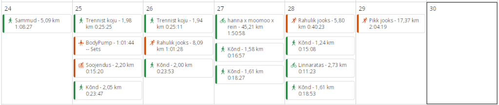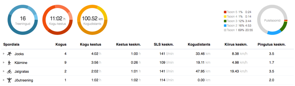 Esmaspäev: trennivaba. Kurk oli veel valus, jätsin jooksu ära.