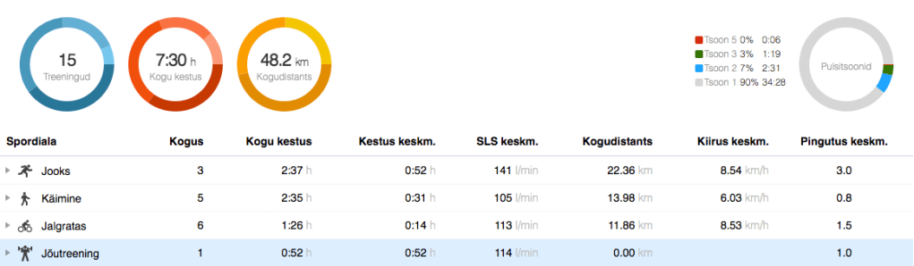 Teisipäev: rahulik jooks. Kõigist käidud radast oli kopp ees ja läksin väiksele spontaansele ringile hoopis Raadi suunas. Täitsa tore ring sai kokku. Üle 6 km väga ei viitsinud. Hoidsin jalgu, et äkki nädala teises pooles üks väike fartlek joosta. (6.2 km, 7:08 min/km, 136 l/min)