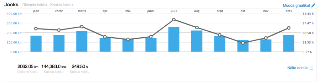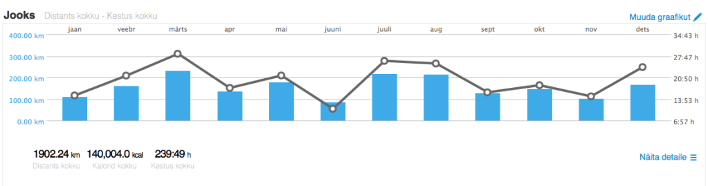 Jooksin oma eelmise rekordi ehk eelmise aasta 160 kilomeetriga üle. Esimest korda elus jooksin üle 2000 kilomeetri. Oma suure panuse andis tavapärasele ühele maratonile kevadel teise lisaks jooksmine ja selleks korralikult treenimine. Ma jäin ellu, jalad ühes minuga. Hämmastav.