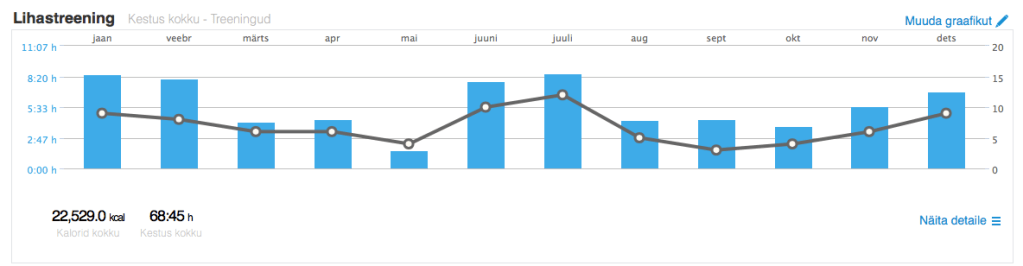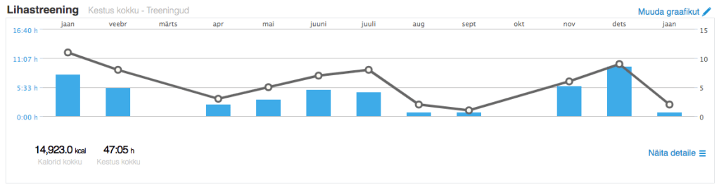 Jõutrenni osas tuli sel aastal oodatud tagasiminek. Minu lemmiktreener oli suurema osa aastast veel beebiga kodus ja see omas selget mõju, sest teiste antud rühmatrennid on küll head, aga mitte parimad. Kindlasti lõi kevadisse jõutrenni mahtu oma mõra kevadmaraton, milleks valmistudes jäi jõutrenn selgelt tagaplaanile.