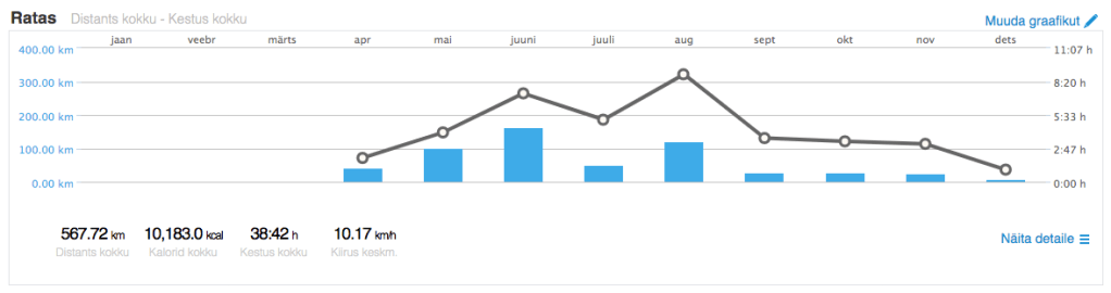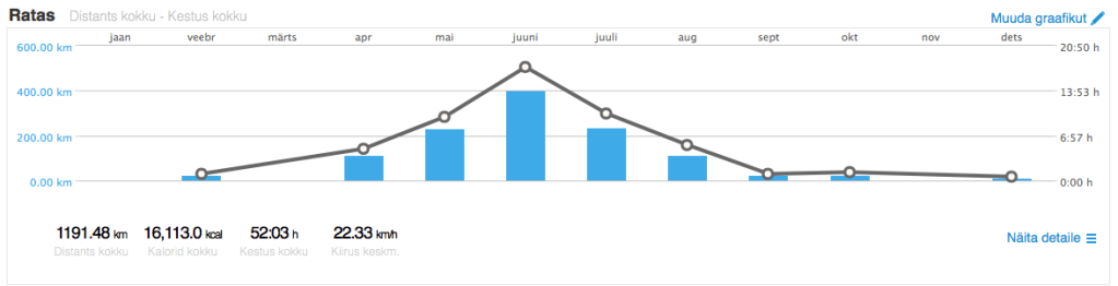 Rattaga olid sel aastal huvitavad lood: maanteerattaga sõitsin pea 3 korda vähem kui eelmisel aastal, sest kevadmaratoni, pulmakorralduse ja sügismaratoni valguses palju võimalusi selleks ei leidnud. Enne Rattarallit käisin vist ühe ainsa korra sõitmas, parimal juhul kaks? Täitsa pull värk! See-eest sõitsin väga palju igapäevaselt Tartu Smart Bike’idega. Näiteks pole ma iial varem vana-aasta õhtul rattaga ringi sõitnud – täiesti uus kogemus.