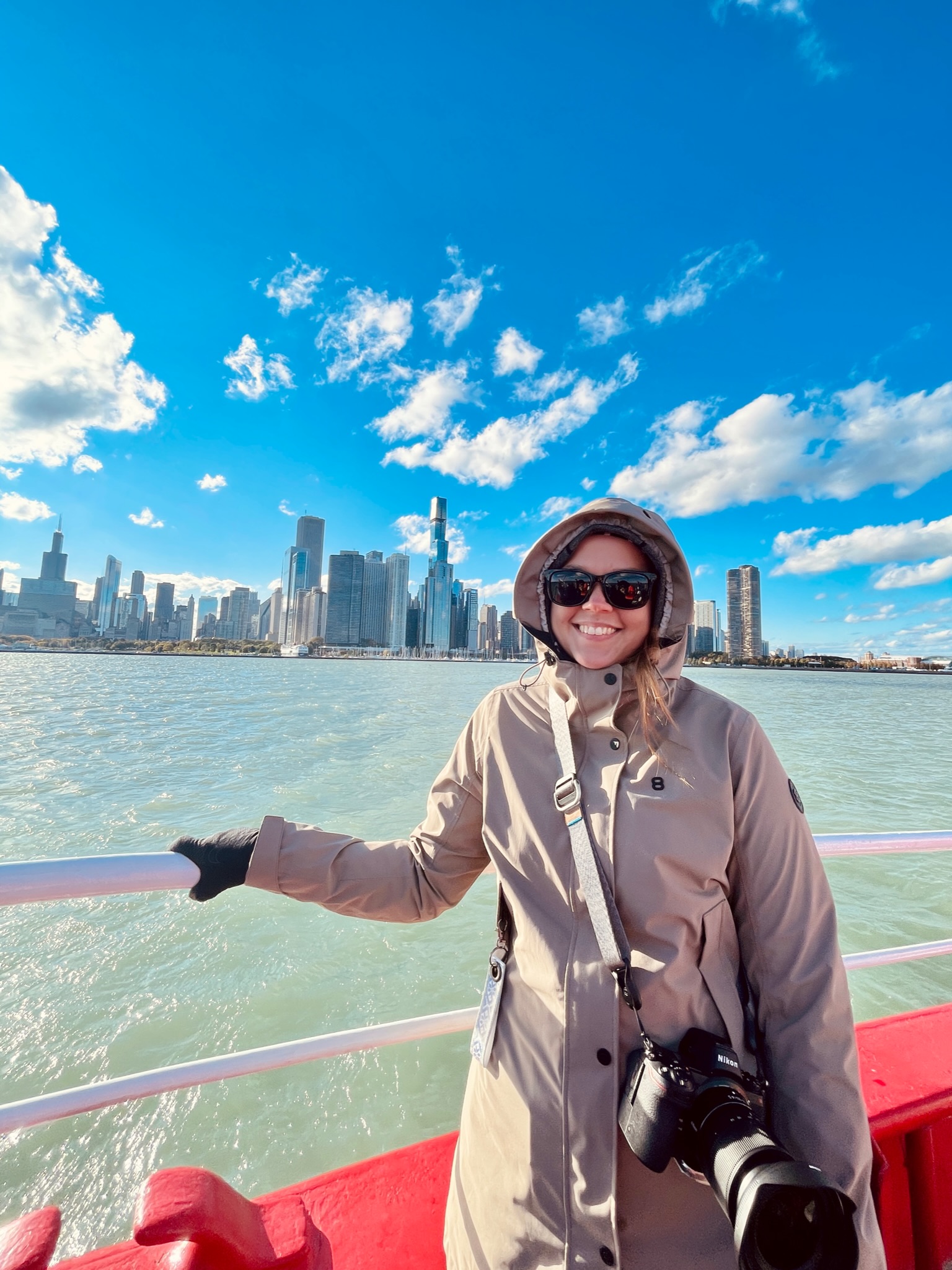 Kohalikud eestlased andsid Chicago maratoni chatis soovituse minna paadiga jõele arhitektuuri tuurile. Olin ennegi sellest lugenud, kuid mõtlesin, et kõnnime lihtsalt ise mööda Riverwalki ja näeme samad asjad ära. Et aga jalgu säästa, siis otsustasime seda võimalust kasutada, seda enam, et piletid saime hulka soodsamalt, kui oleks olnud tavahind. Maksime kahepeale ca 45€. Giid oli äärmiselt meeldiv ja vaimukas ning see pärastlõuna läks lausa lennates. Kui saabudes oli Chicagos üle 20 kraadi sooja, siis nüüd oli ca 10 kraadi sooja ja külm tuul.