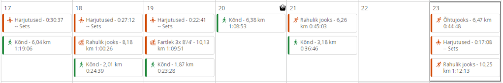 Esmaspäev: trennivaba. Päris mahukas nädalavahetus jäi seljataha, seega esmaspäeva tegin trennivabaks.