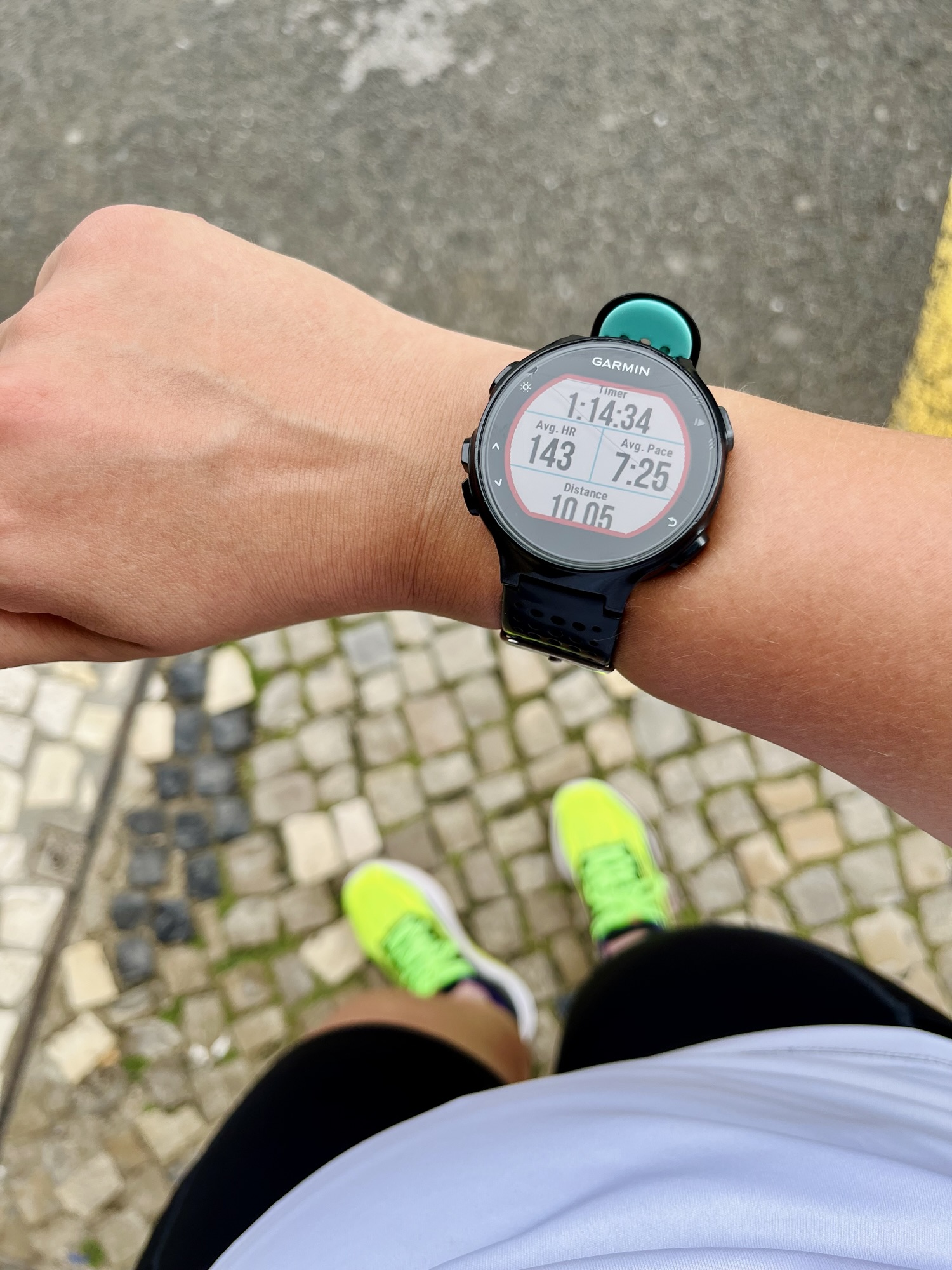 Teisipäev: rahulik jooks | õhtujooks. Ennelõunal võtsime ette päeva põhitrenni. Minul 10 km rahulikult. Kulgesin vaikselt ikka nende mõnusate metsateede peal, päris palav ja raske oli, suuremad tõusud lausa kõndisin, aga ühel hetkel hakkasin tundma oma vasaku jala Achilleust. Pingest sai valu. Halb. (10.05 km, 7:25 min/km, 143 l/min)