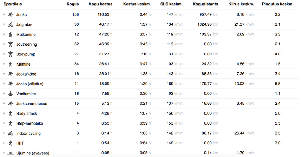 Jõutrenni tegin taaskord rohkem kui eelmisel aastal, lausa 20 tunni võrra enam. See on juba päris kena saavutus. Jääb vaid loota, et sellest on kasu vigastuste ennetamisel uuel hooajal.
